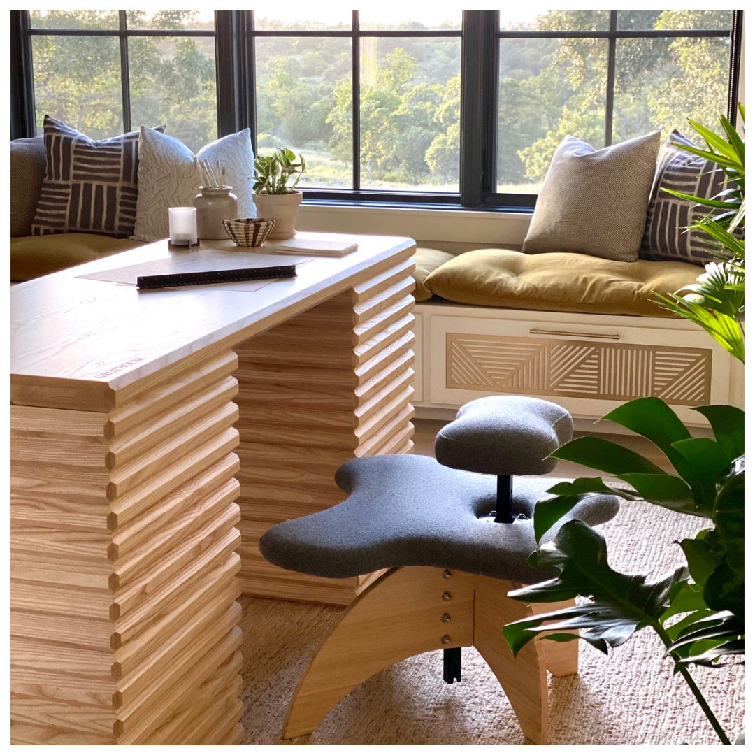 We are beyond excited to share the images from this gorgeous room, and we are so grateful to Laura Hodges and her team for including us in this unique biophilic design. The room is not only a beautiful office space, but an inviting and dynamic active workspace.