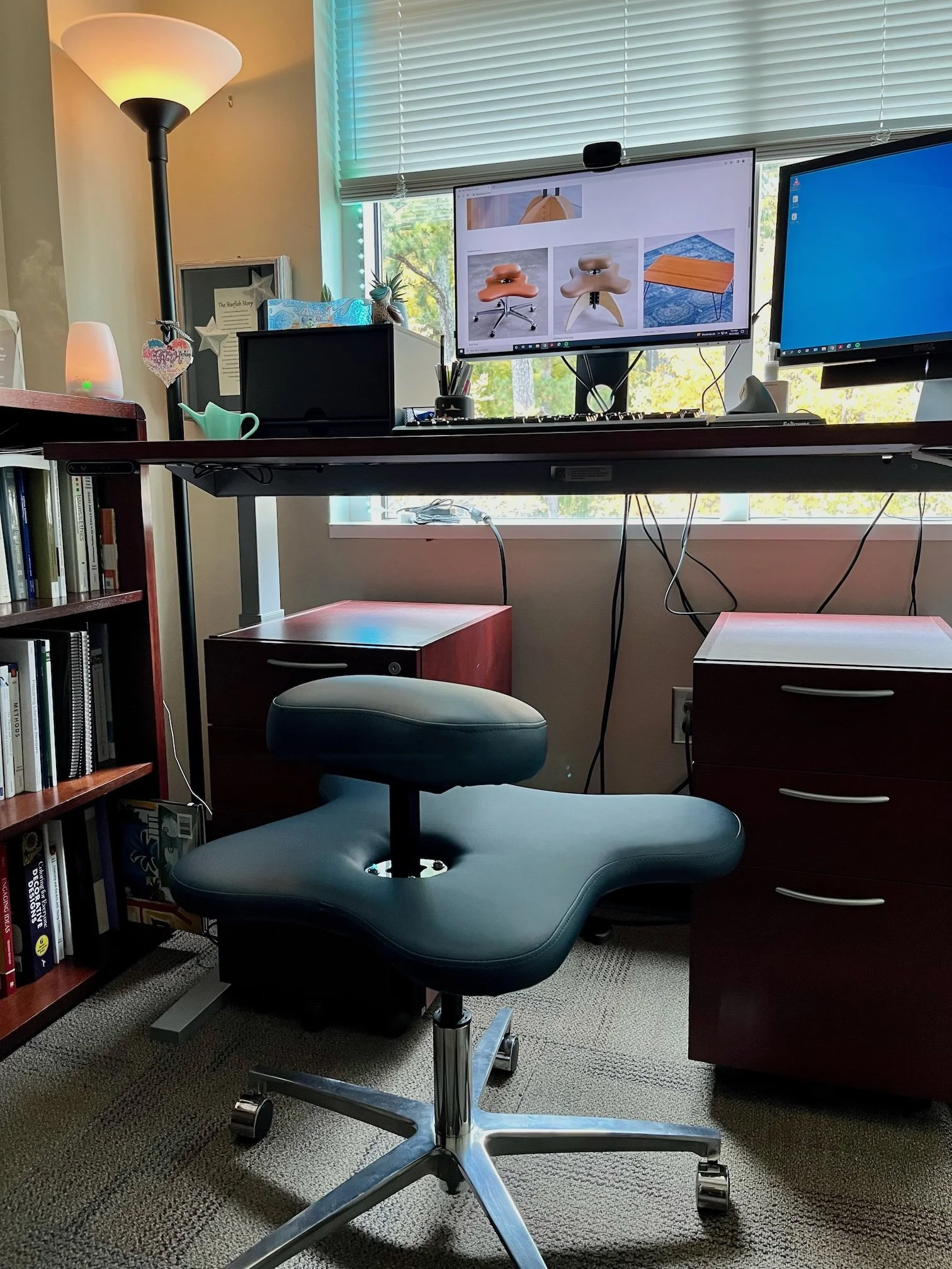 As a modern Professor, I spend the majority of my time on the computer—grading, meeting with students and colleagues, writing reports, responding to email, conducting evaluations, engaging in scholarship, and so forth. Truly, the vast majority of my work day is spent behind the dull blue glow of my laptop screen. There are probably multiple issues associated with long-term computer use; my optometrist likely has something to say about that. But the most pressing issue for me is the intense, daily pain in my mid-back when I sit for too long. Prior to purchasing my Soul Seat, my solution was to use a desk riser to allow me to stand while I work on my computer. But, due to the prolonged standing, my lower back started to give me issues. Apparently, standing all day is not a great solution either. It was a real conundrum: stand for too long and hurt or sit for too long and hurt. Either way, I ended each day in pain, which ultimately affected my quality of life in rather drastic ways.
