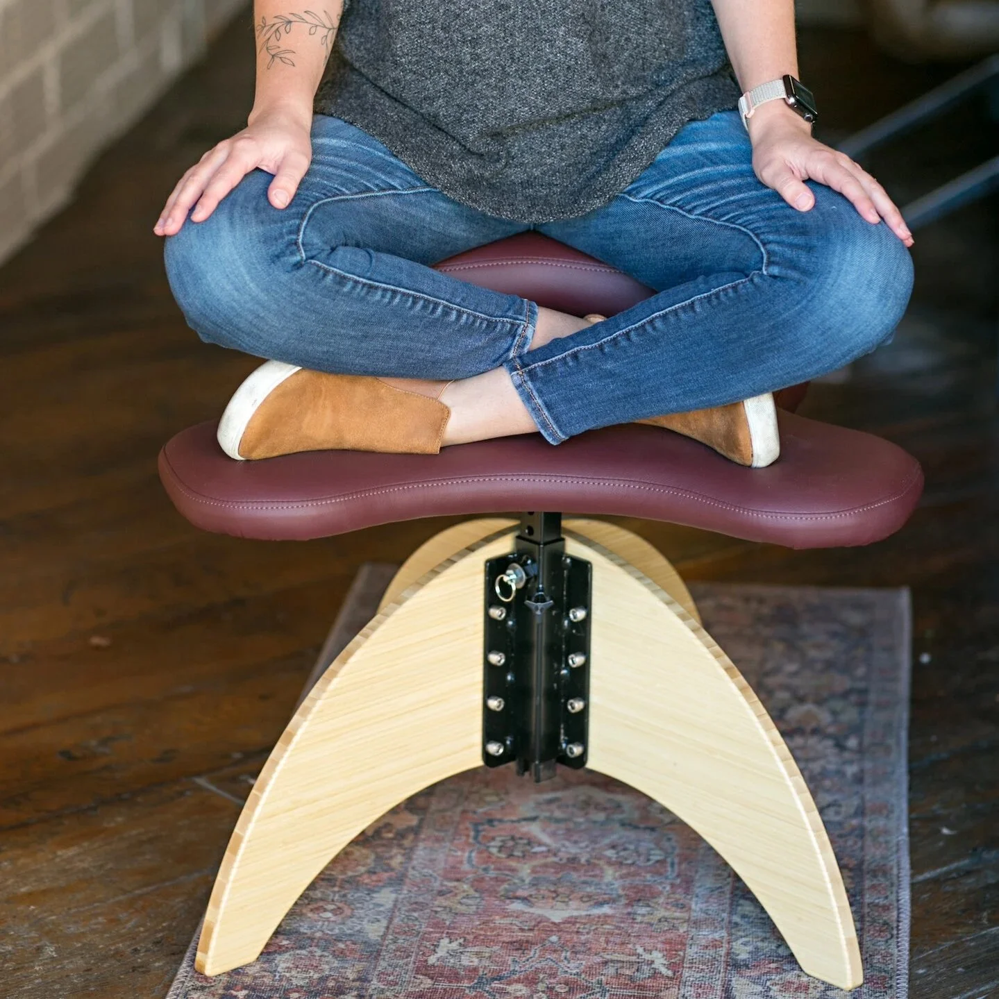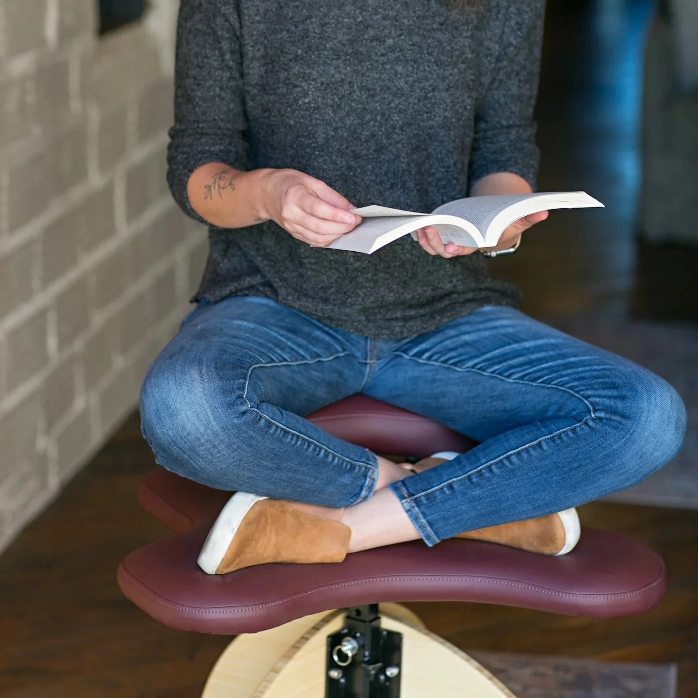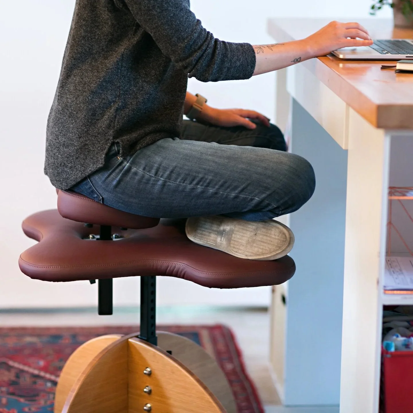 Replace your traditional office chair with a chair that allows you to sit cross-legged while you work - along with several other positions!